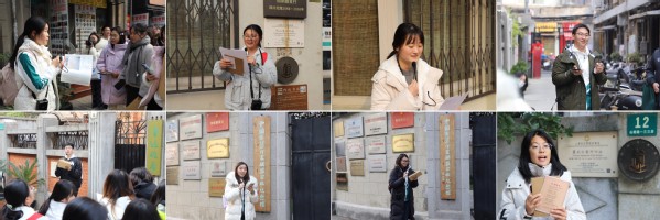在起点景云里,同学们借助“邻居地图”在街巷中寻访鲁迅、冯雪峰、叶圣陶等文化名人的生活印记,在真实的街巷空间中感受历史。在中国左翼作家联盟成立大会旧址,大家通过给“左联五烈士”书写缅怀名信片的方式表达对革命先烈的崇高敬意。内山书店旧址的“密信显影”环节,则利用道具“显影笔”巧妙再现了历史斗争的智慧。在鲁迅故居、茅盾旧居,同学们通过感受木刻版画艺术、导师带读《写给苦闷青年的一封信》,体悟以笔为刃、剖析时代的深邃与坚韧,展开了一场跨越时空的青年对话。在瞿秋白寓所旧址,对着其翻译的首版中文《国际歌》,全体同学以激昂的颂唱共同完成了这场“寻火之旅”的精神升华。